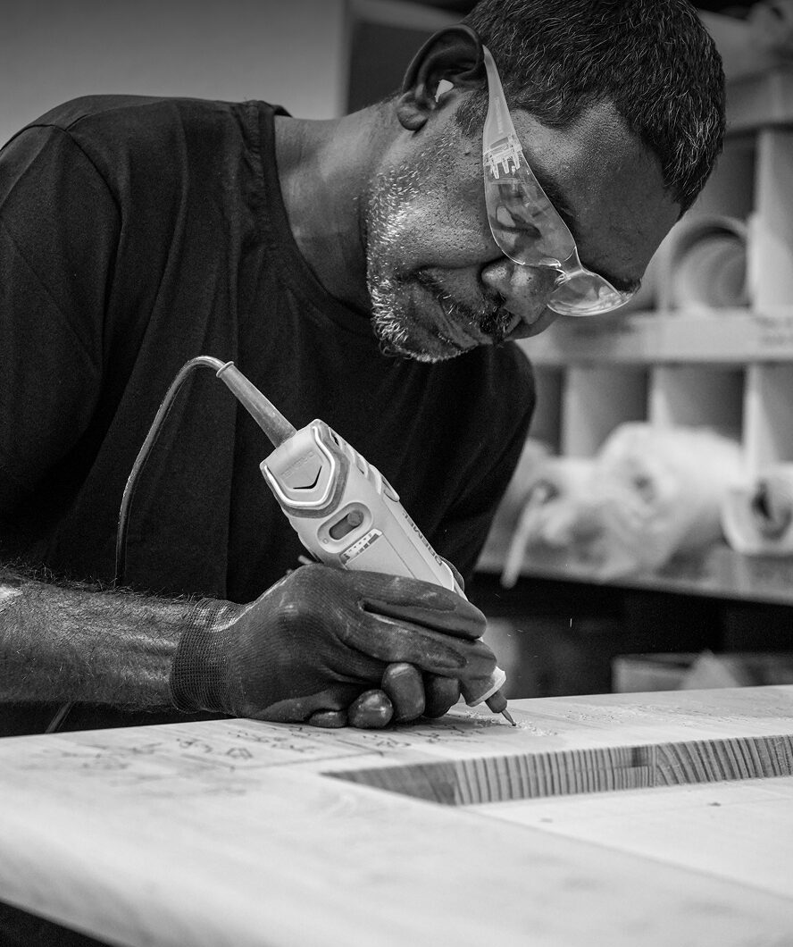 Manapan’s work is shaped by culture, care, and craftsmanship. Every piece is handmade in Arnhem Land by a team of skilled Yolngu makers, combining time-honoured techniques with modern tools and equipment.